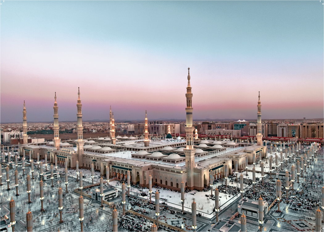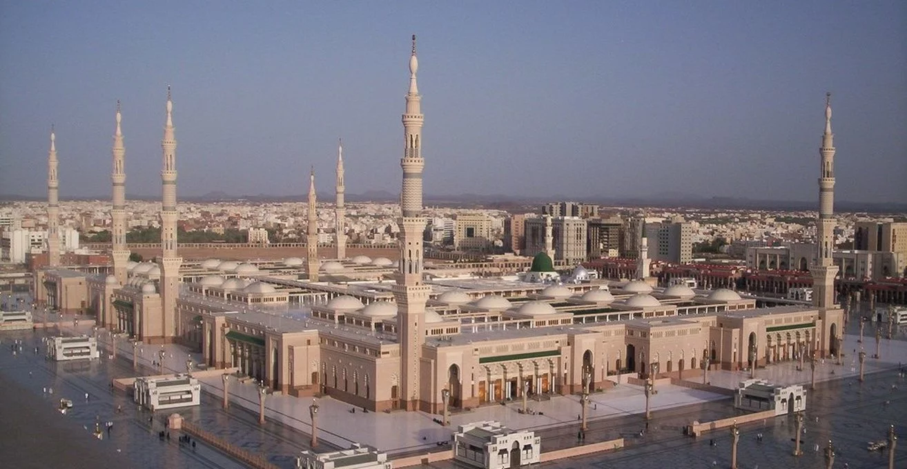 Medina is a city in western Saudi Arabia. In the city center, the vast Al-Masjid an-Nabawi (Prophet's Mosque) is a major Islamic pilgrimage site. Its striking Green Dome rises above the tombs of the Prophet Muhammad and early Islamic leaders Abu Bakr and Umar. The Masjid al-Qiblatain (Qiblatain Mosque) is known as the site where the Prophet Muhammad received the command to change the direction of prayer to Mecca.